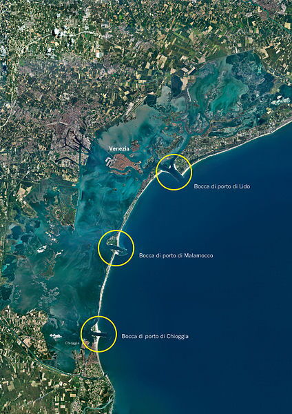 Das historische Zentrum von Venedig ist extrem von Hochwasser bedroht. Damit es geschützt wird, wurde das Projekt MO.S.E ins Leben gerufen. Dabei geht es um ein Sturmflutsperrwerk, das an den drei Öffnungen der Lagune von Venedig installiert werden soll. Insgesamt 78 bewegliche Barrieren sollen verhindern, dass eventuelle Sturmfluten in die Lagune gelangen. Nur bei einer Unwetterwarnung richten sich die aus Stahltoren bestehenden Barrieren auf und trennen die Lagune vom Adriatischen Meer. Nach der Flut verschwinden die Tore wieder in speziellen Kästen im Meeresboden. Eine bemerkenswerte Konstruktion.