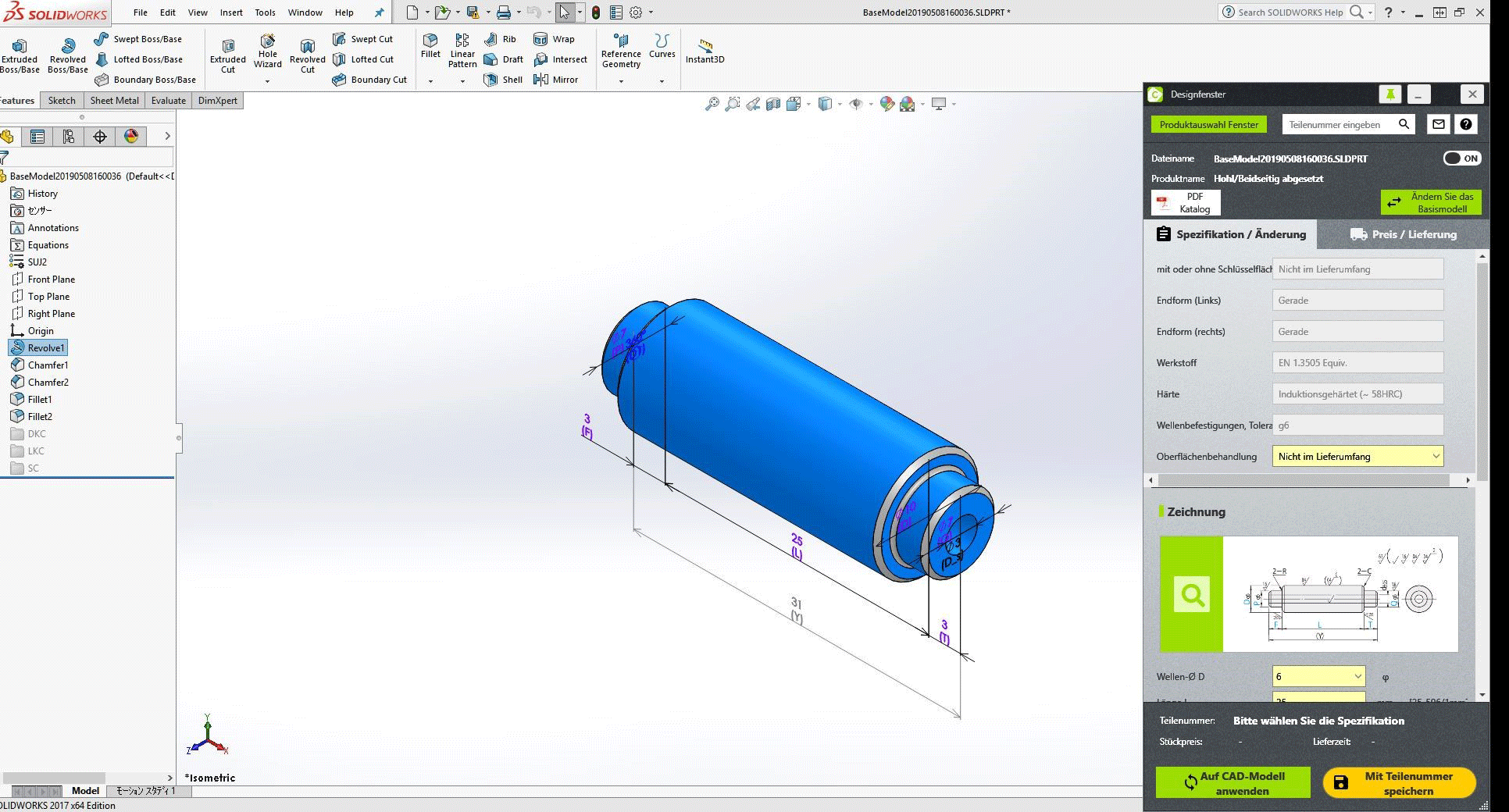 - Das Bauteil in SolidWorks nach individuellen Anforderungen konfigurieren und die Änderungen über das Add-on bestätigen