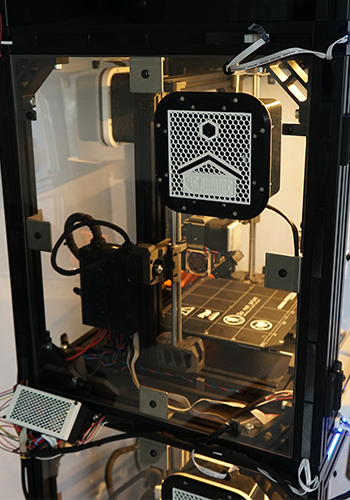 Mit der PCPointer.de 3D-Drucker-Einhausung werden nicht nur laute und störende Geräusche reduziert, sondern auch gefährliche Partikel gefiltert. Ein weiterer Vorteil ist die Temperaturkontrolle des Innenraums, um unter anderem das Warping zu minimieren und bessere Druckresultate zu erzielen. Die Einhausung ist hochflexibel und kann nach eigenen Wünschen erweitert und verbessert werden.