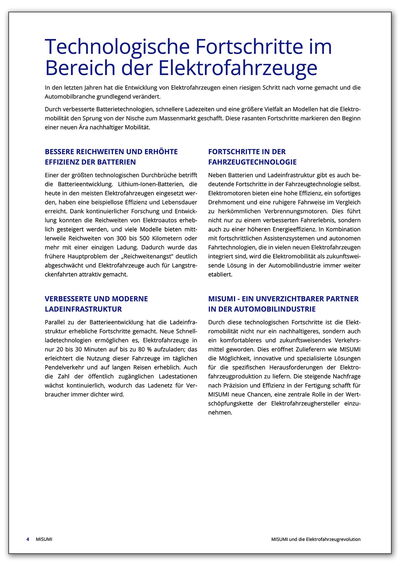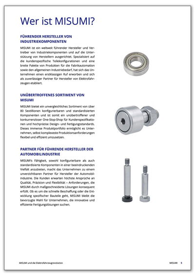 Um mehr zu erfahren, wie MISUMI mit innovativen Lösungen und höchster Präzision den Wandel in der Automobilindustrie vorantreibt und welchen Einfluss das auf die Zukunft der Elektromobilität hat, laden Sie jetzt den vollständigen Artikel herunter.