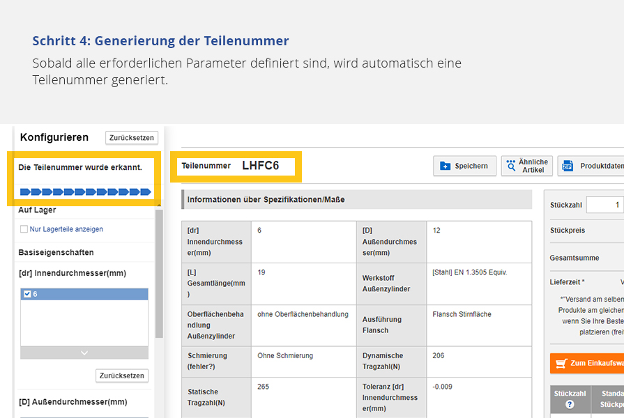 Bitte beachten Sie, dass Sie zunächst die Konfiguration des Produkts abschließen müssen, um eine gültige Teilenummer zu generieren.