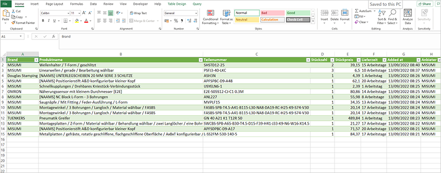 Gehen Sie auf meine Seite, um eine Stückliste (.csv-Format) zu erstellen und mit Kollegen zu teilen.