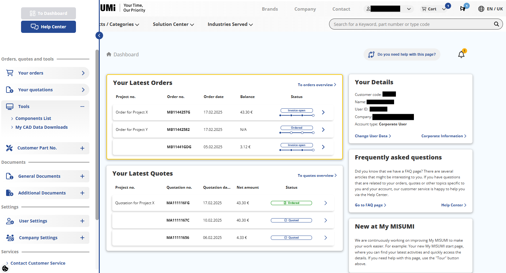 Eine Auflistung und Erläuterung der wichtigsten Funktion des MyMISUMI Kundenportals finden Sie im weiteren Verlauf des FAQ.