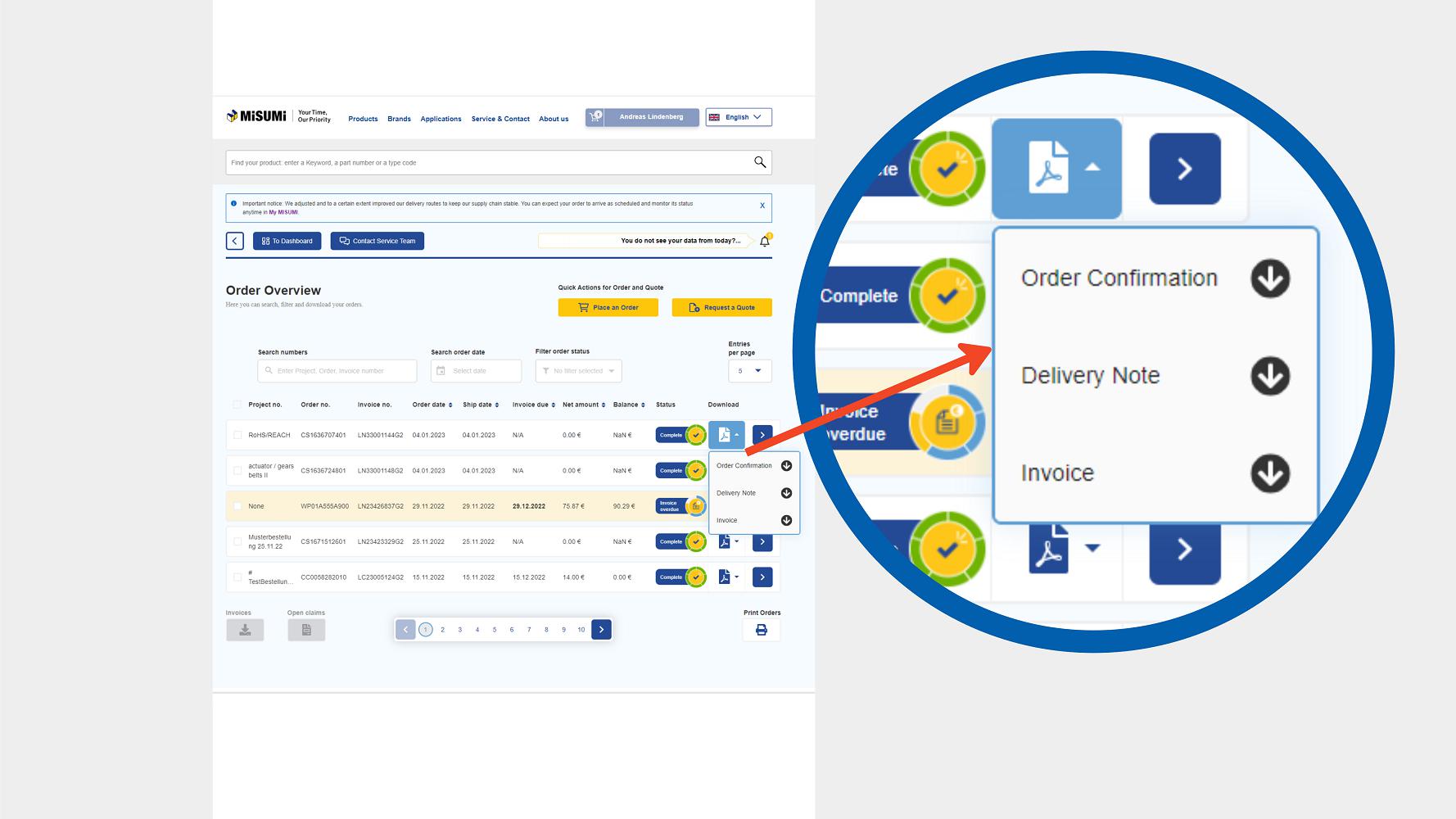 Die Rechnungskopie zu ihrer Bestellung finden Sie im MyMISUMI Kundenportal:
