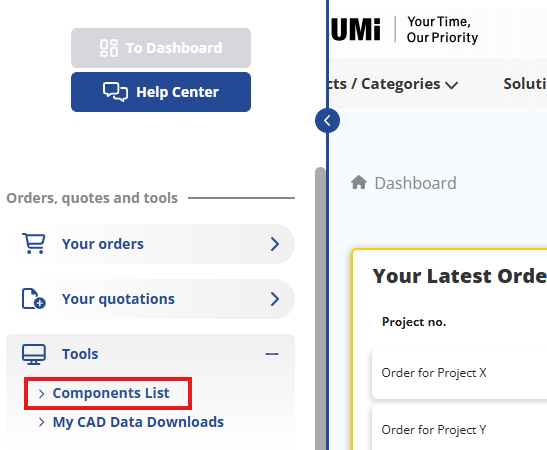 Komponentenliste im MyMISUMI Kundenportal (CSSP)