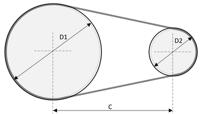 - D2 = Durchmesser der kleineren Riemenscheibe