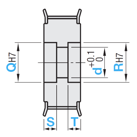 Nur verfügbar für Form A. Wellenbohrungs-Ø d ist +0.1 / 0 Keine Gewindebohrungen oder Montageschrauben. |