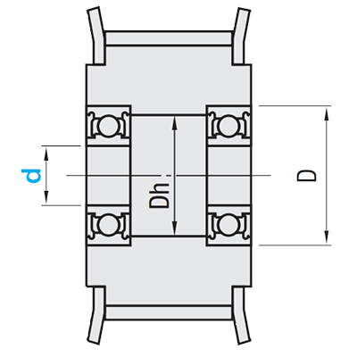 | Rollentyp | Laufrolle | Laufrolle mit Bordscheiben | Laufrolle | Laufrolle mit Bordscheiben | Laufrolle Kunststoff | Laufrolle Kunststoff mit Bordscheiben |