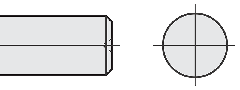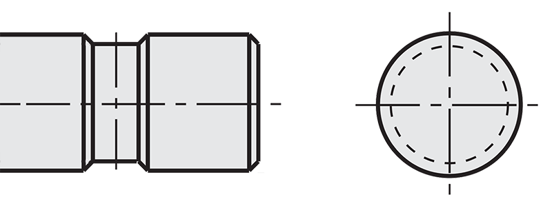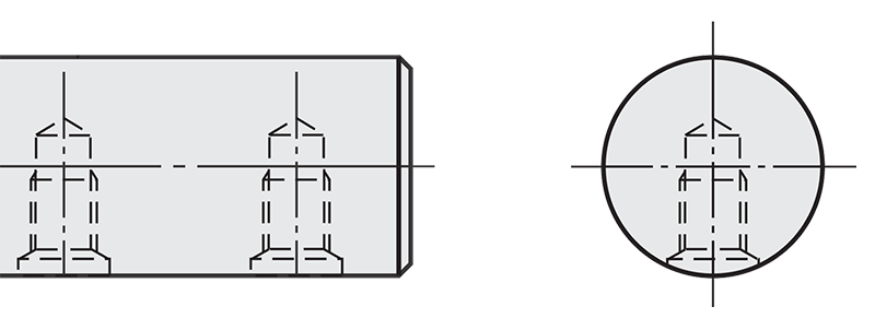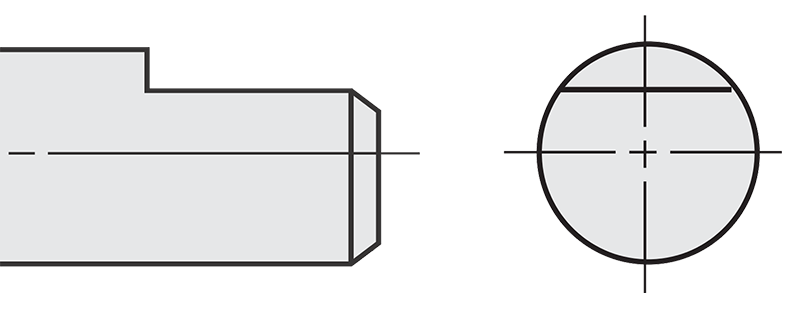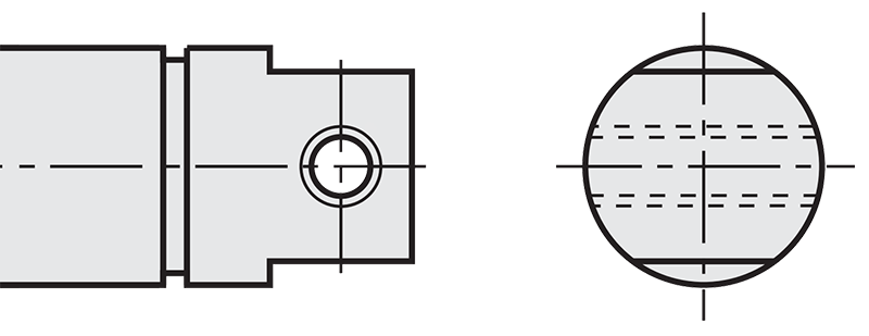 | Schlüsselflächen/Klemmfläche - Am Ende zweiseitig abgeflacht mit Sicherungsnut und querliegendem Innengewinde für seitliche Zugspannung | ![]() |