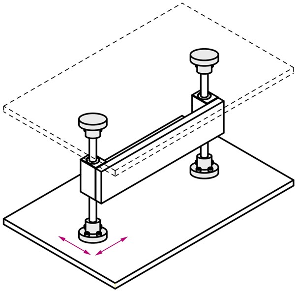 Eine Linearwelle kann grundsätzlich auch auf Torsion beansprucht werden, jedoch ist dies meist nicht gewünscht da sie als Führungselement verwendet wird. In der Regel ist die Linearwelle daher fest gelagert und überträgt keine Drehbewegung, sondern wird hauptsächlich auf Biegung beansprucht. Werden, wie hier im Beispiel, zwei parallele Linearwellen eingesetzt, wird eine Beanspruchung auf Torsion nahezu ausgeschlossen.